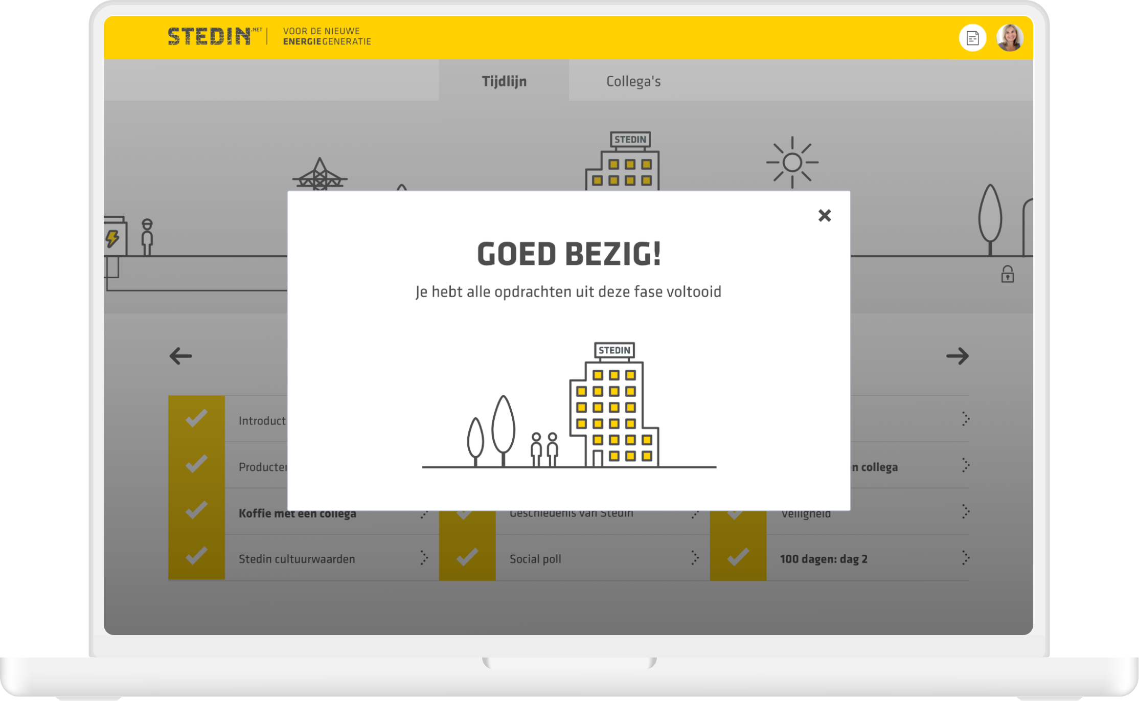 Every month, an average of around 25 new employees start working at Stedin; a large power grid operator in the Netherlands. During their onboarding these new hires - spanning form technicians to managers - undergo a complete immersion into the Stedin culture. TinQwise was asked to develop an onboarding platform that guides Stedin’s new hires through their first 100 days.